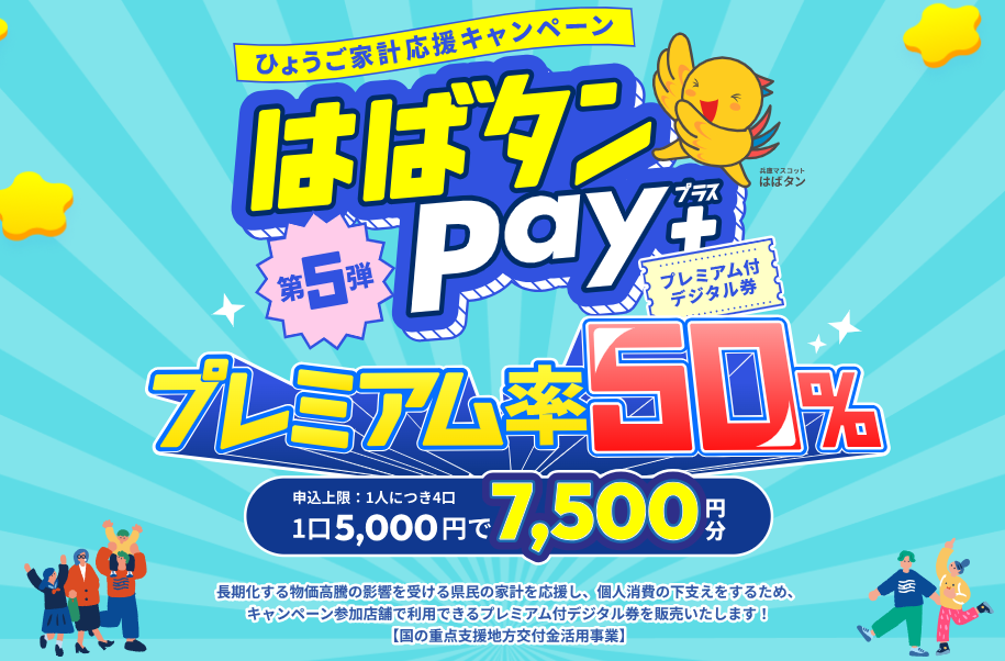 待ちに待った「はばタンPay+(プラス)」第5弾の申し込みが、3月18日からスタートしています。今回は一般枠で、1口5,000円で7,500円分のデジタル商品券が購入でき、1人最大4口まで申し込み可能。つまり夫婦2人なら、最大40,000円の支払いで60,000円分のお買い物ができちゃうんです!