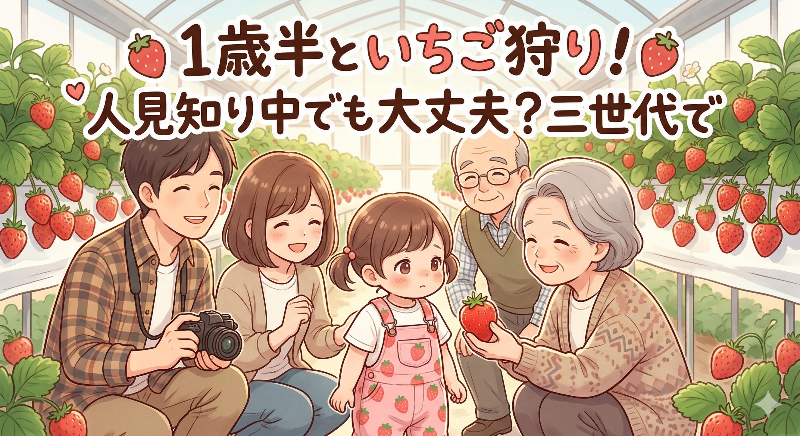 今回は、おじいちゃんおばあちゃんに誘っていただいて、家族三世代でいちご狩りへ行ってきたときのレポートをお届けします🍓